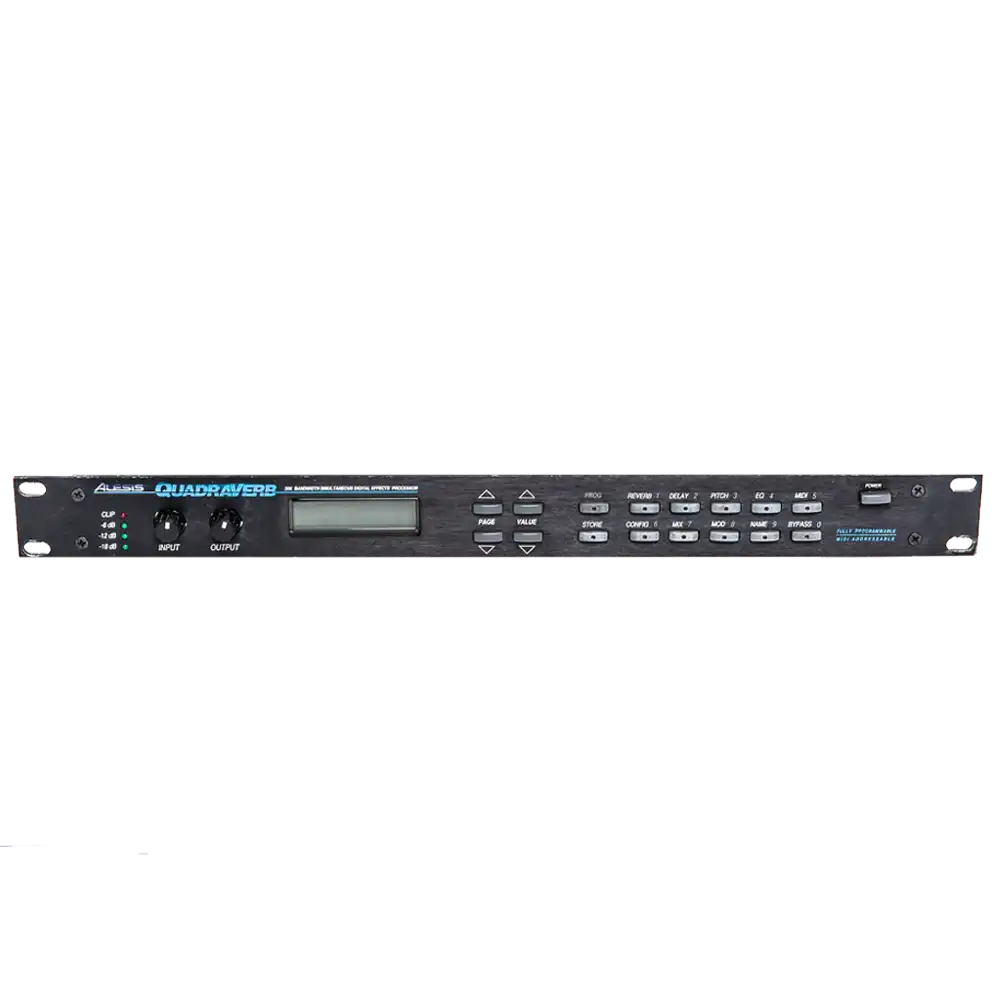 The Alesis Quadraverb is a powerful multi-effects processor known for its versatile reverb, delay, and modulation effects. Perfect for both live and studio applications, it delivers high-quality sound and extensive programming capabilities.