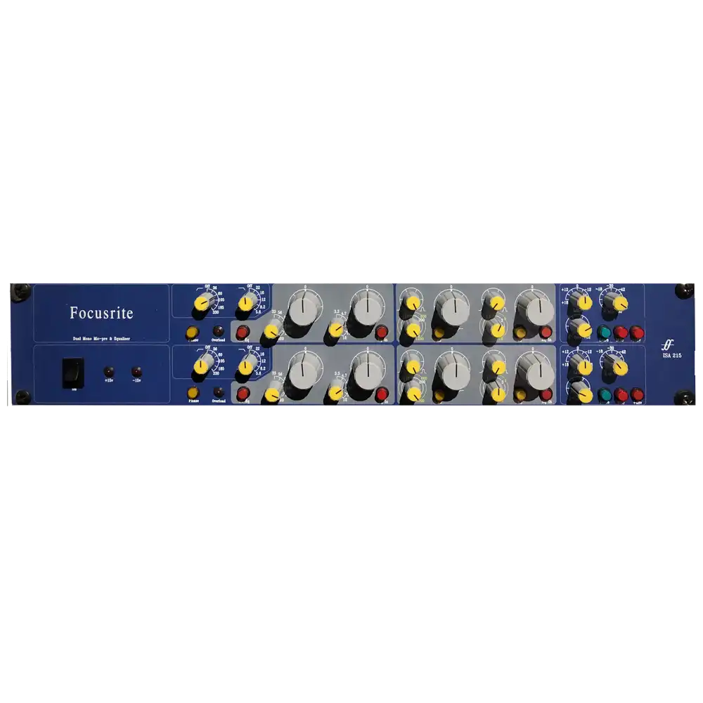 The Focusrite ISA215 EQ is a versatile compressor/limiter/gate, designed to provide comprehensive dynamic control for a variety of audio sources. Its transparent compression and reliable gating make it ideal for both live sound and studio applications, ensuring your audio remains balanced and free of unwanted noise.