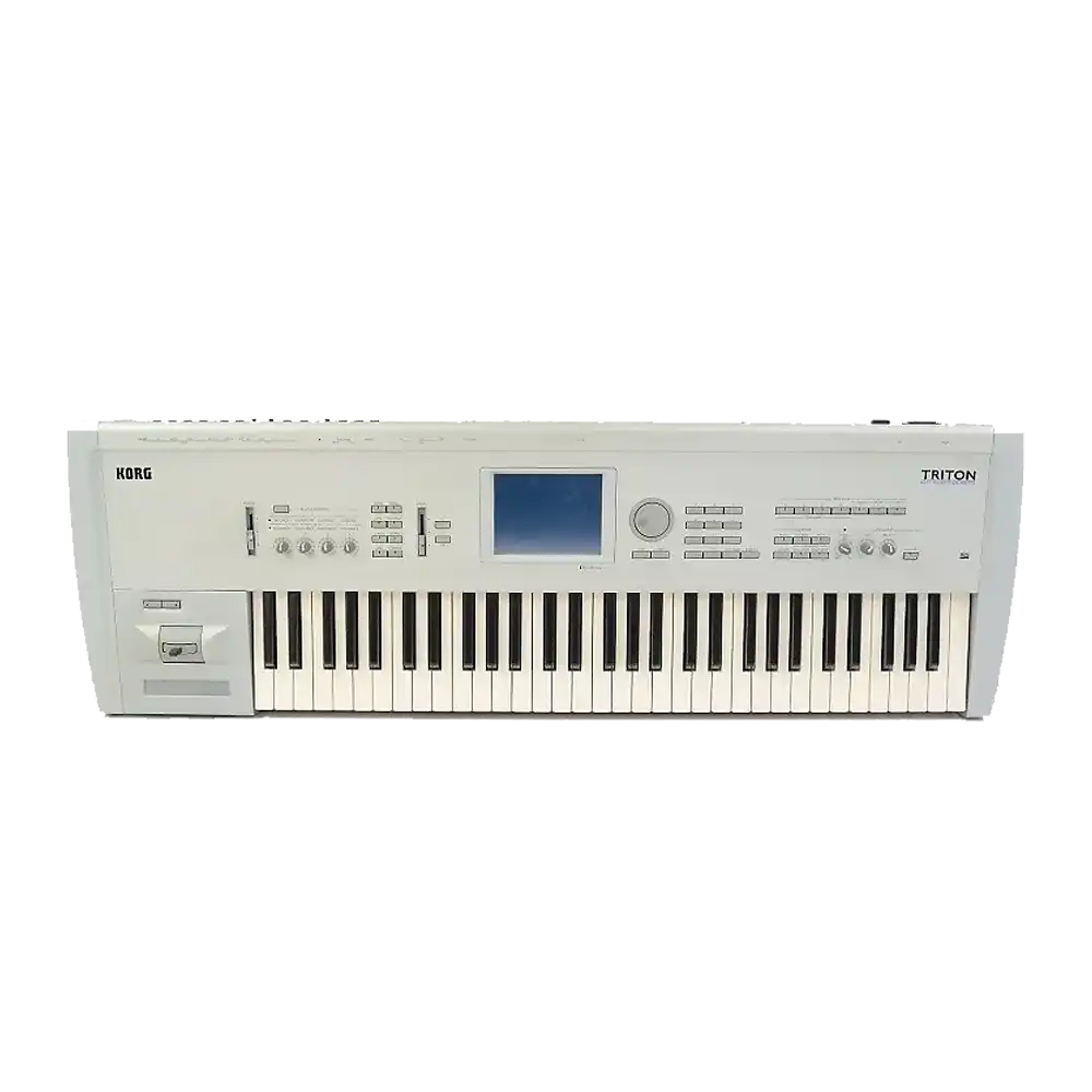 The Korg Triton is a versatile workstation keyboard, known for its rich sounds and extensive sequencing capabilities. It features semi-weighted keys, providing a responsive playing experience suitable for both live performances and studio work.