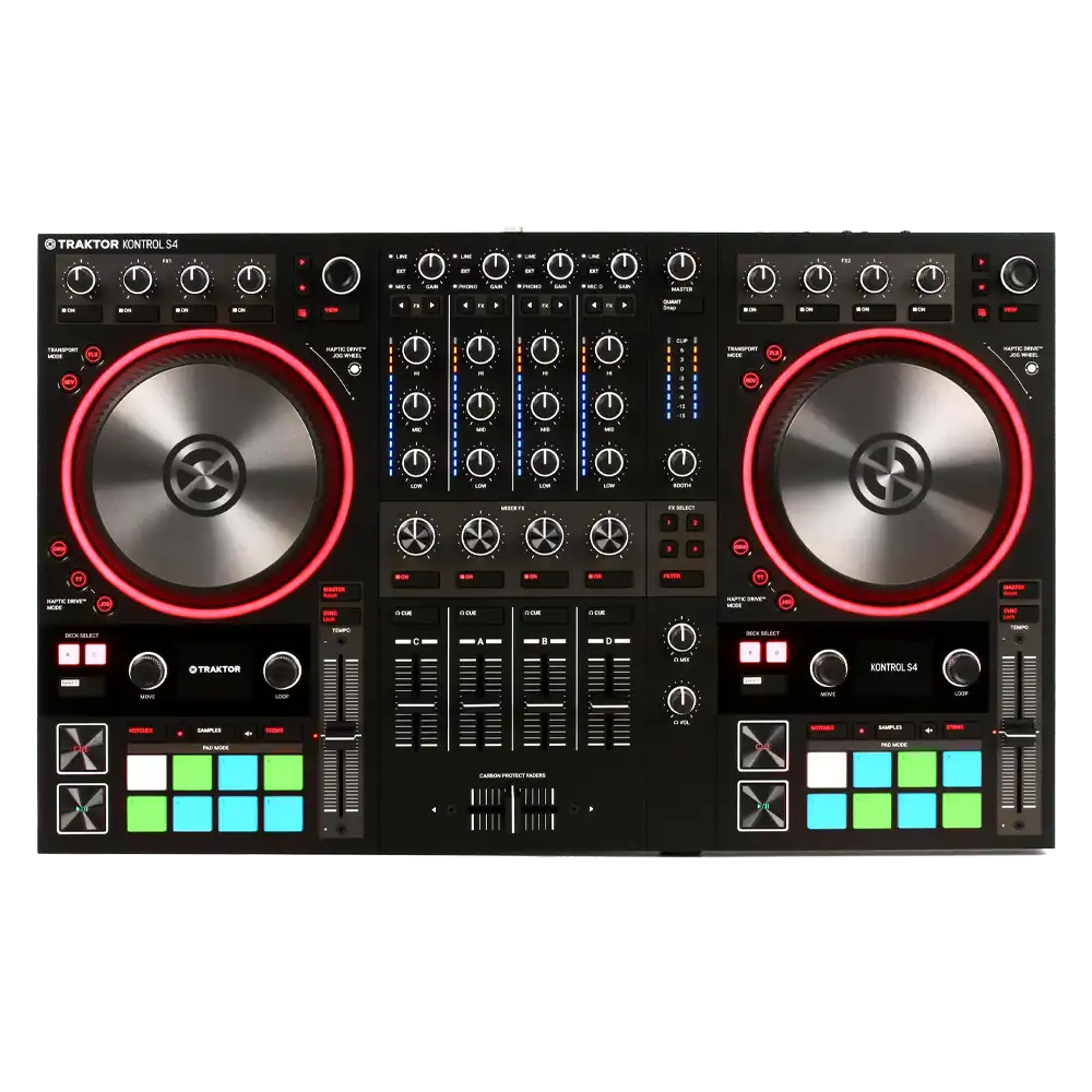 The Native Instruments Traktor Control S4 is a versatile and powerful DJ controller that offers a complete all-in-one solution for professional DJs. Featuring a 4-channel mixer, high-resolution jog wheels, and touch-sensitive controls, the S4 provides a tactile and responsive mixing experience. It includes a built-in audio interface and is fully integrated with Traktor Pro 3, offering advanced performance features such as Remix Decks and Stem Decks.